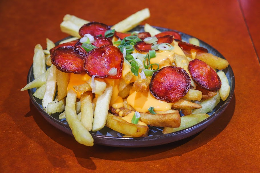 Batata Frita Coberta com delicioso Cheddar cremoso caseiro e Bacon defumados da casa