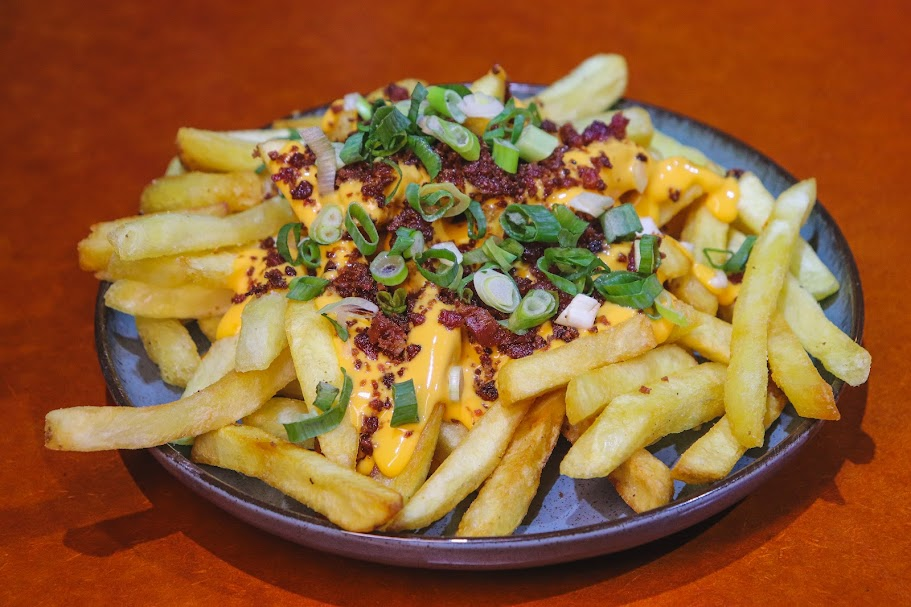 Batata Frita Coberta com delicioso Cheddar cremoso caseiro e Bacon defumados da casa